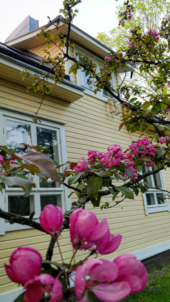 Henki salpautuneena pääsimme kiinni uuteen elämään, vanhan puutalon omistajiksi ja asukeiksi. Kaikki oli kotoisaa, yritimme aistia talon ja pihapiirin henkeä. Päätimme, että asumme ensin rauhassa, että voimme tutustua taloon ja sen rytmiin. Puutarhassa leikkelimme säästeliäästi nurtsia, jotta näkisimme, mitä kaikkea sieltä nousee.
